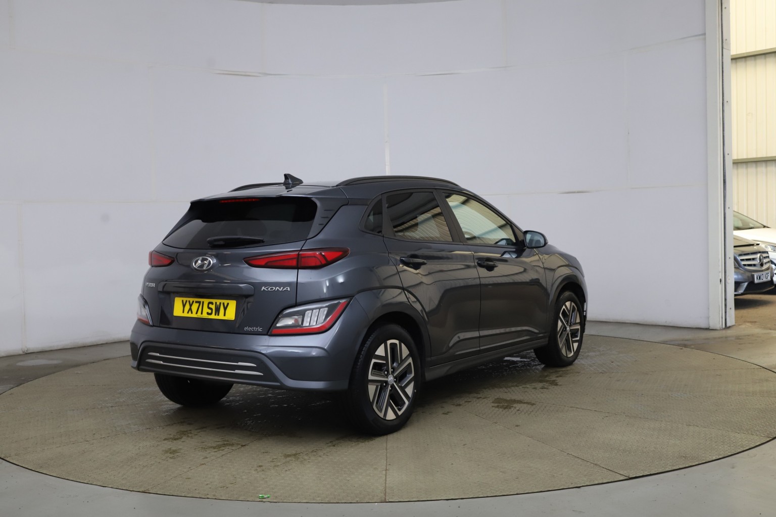 Take a look at this stunning 1 Owner From New Hyundai Kona EV, finished in the ever-popular grey and styled with sleek 17-inch alloy wheels. Step inside and you'll find a well-kept black cloth interior with heated front seats and a tech-focused cockpit. Features include a multi-function HEATED steering wheel, auto headlights, Blind spot Assist, Lane Assist, Drive mode, Cruise control, satellite navigation, reverse camera, front and rear parking sensors, Phone projection, Apple Car Play, Android Auto, Wireless Phone charger, DAB radio, Bluetooth connectivity, and more. The car comes with two keys, FULL HYUNDAI SERVICE History incl MOT carried out by Hyundai, and still under Hyundai 5 year mileage Warranty and 8 year Battery warranty for peace of mind.